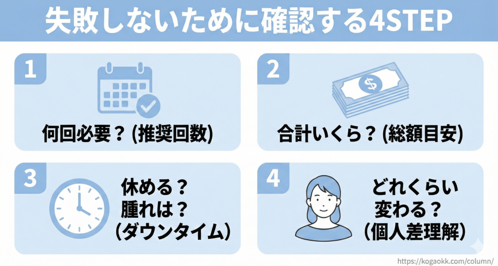 これらの情報を十分に確認できるクリニック選びが満足度のカギとなります。