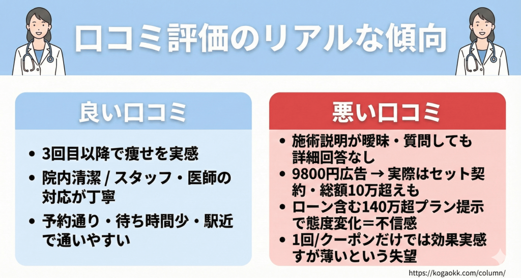 SNSやクチコミサイトをチェックすると、スルリム式注射には肯定的な声だけでなく、いくつか否定的な意見も見られます。