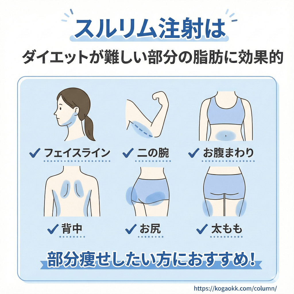 一部のクリニックやSNSでは「脂肪破壊注射」「スルリム式脂肪破壊注射」などの名称でも紹介され、脂肪細胞そのものに直接働きかける痩身注射として話題になっています。
